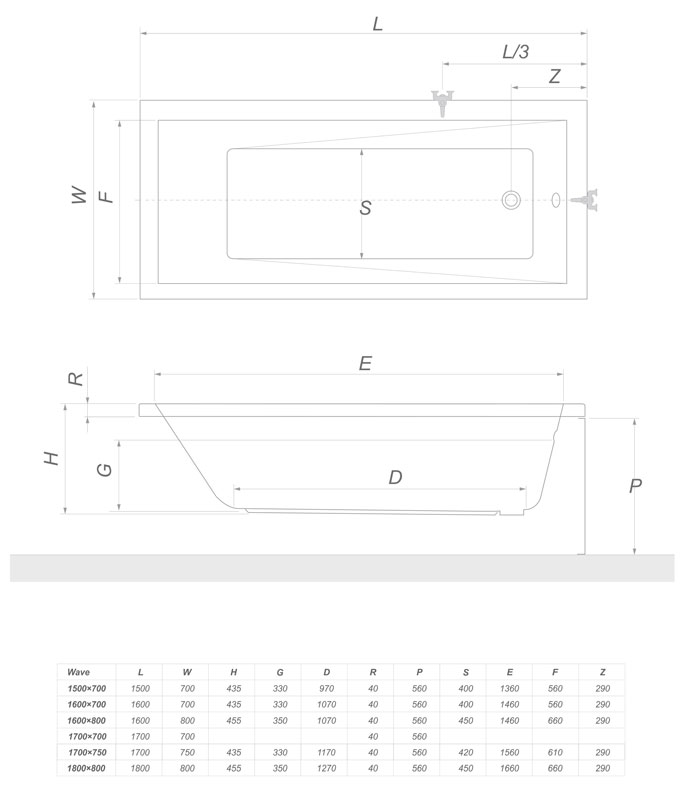 Cikkszám: NIWELL Wave 160x80 cm szögletes akril kád