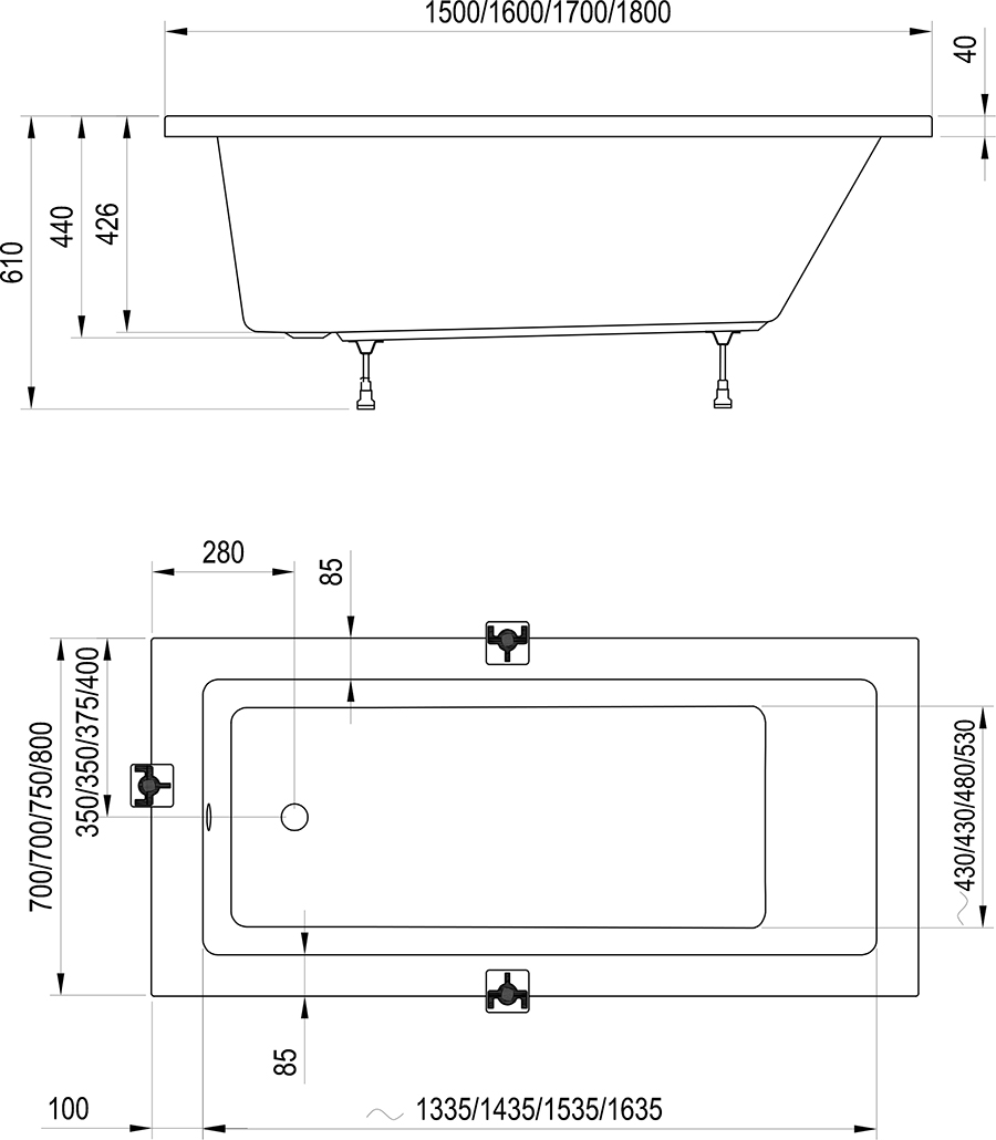 A Natural egy modern téglalap alakú kád, amely kiválóan használja ki a teret. A merőleges oldalfalak nagy belső teret biztosítanak a legnagyobb kényelem érdekében.