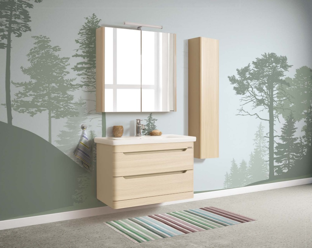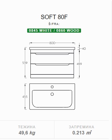 Polwood Soft 80F fali, alsó szekrény 2 fiókkal + kerámia mosdó, 80 cm,