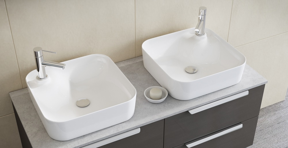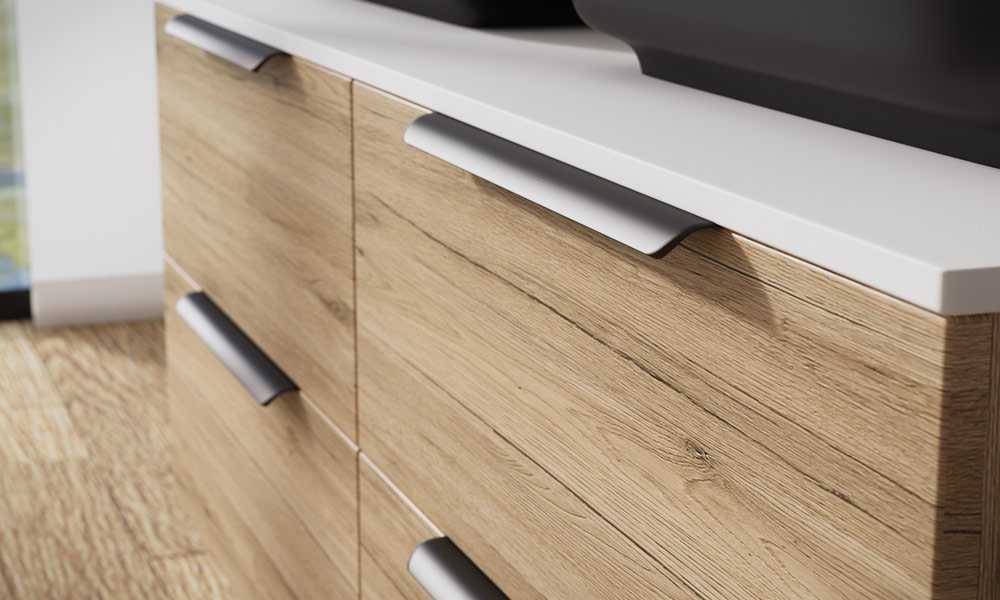Tboss Nola 140 4F 2M alsó fürdőszobabútor 4 fiókkal, 2 kerámia mosdóval, 3 féle fogantyúval és 19 színben választható