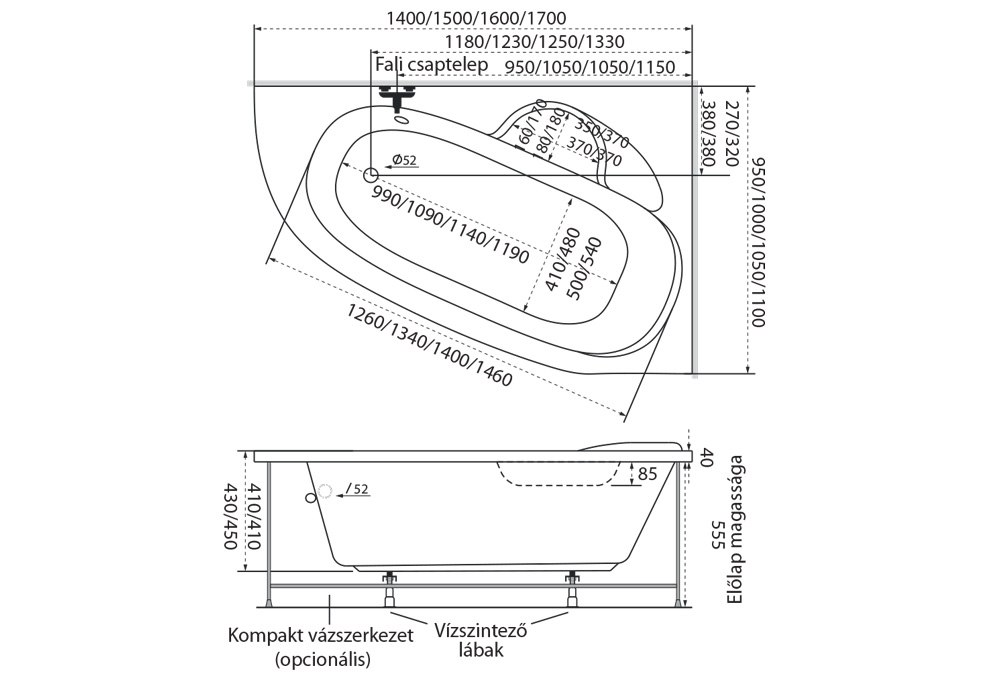 Az ár a kádtestet tartalmazza, amely beépíthető, burkolható.