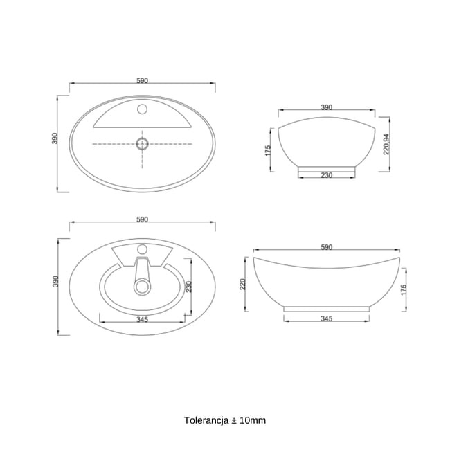 Invena Feme pultra tehető 59 cm mosdó, csaplyukkal