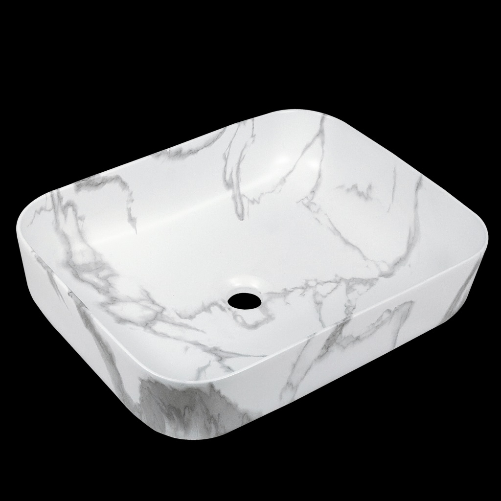 Invena Florina pultra tehető 40x51 cm szögletes mosdó, fehér márványmintás színben