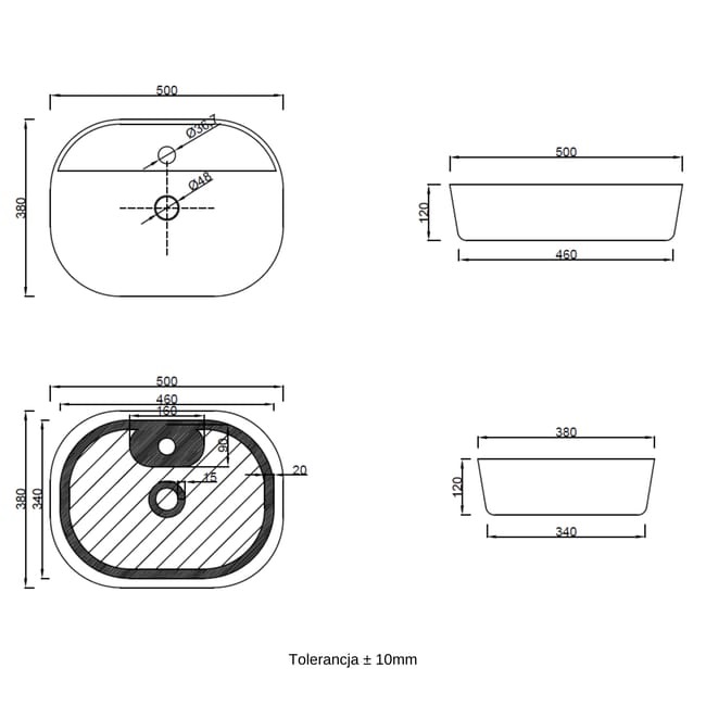 Invena Halia pultra tehető 50 cm mosdó, csaplyukkal