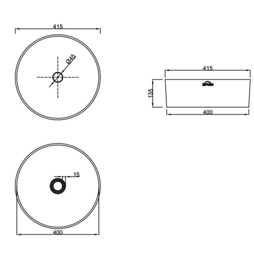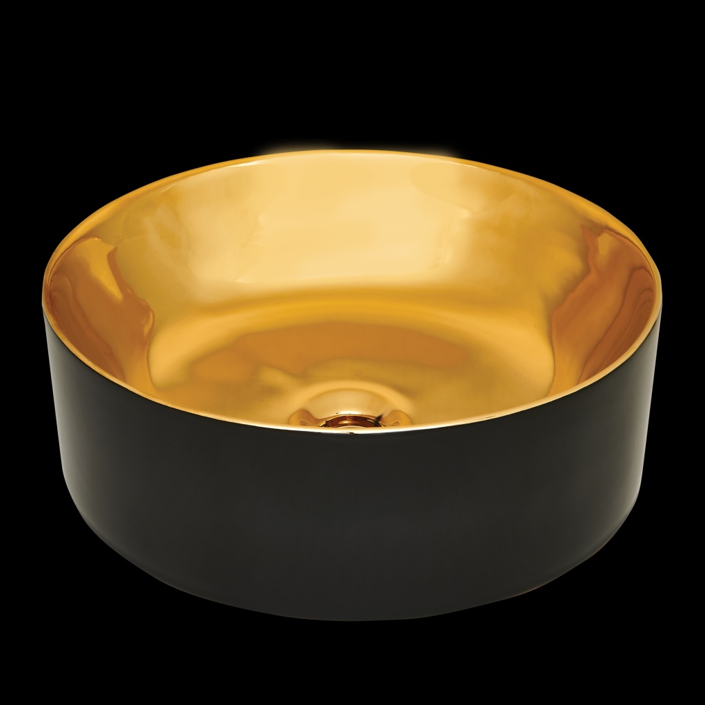 Invena Kos pultra tehető 42 cm kerek mosdó, fekete-arany színben