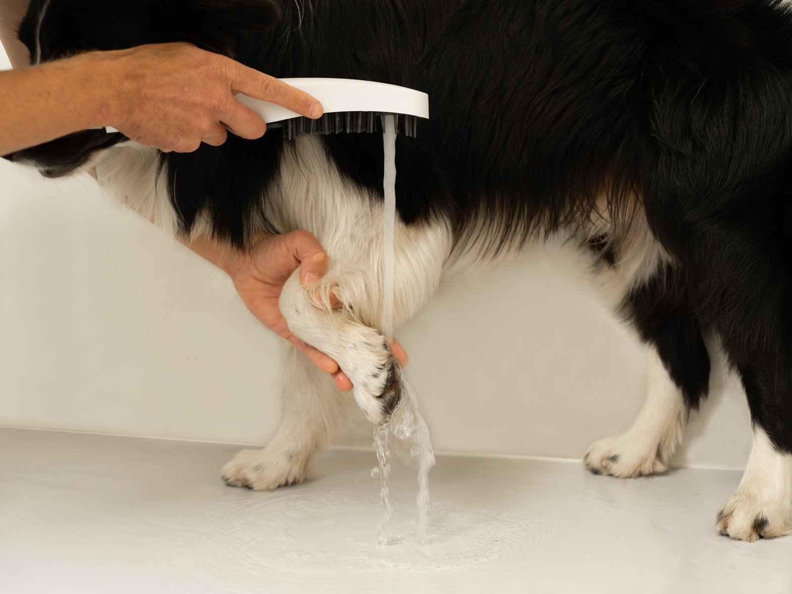 A rugalmas szilikon kefe könnyedén kifésüli a szőrzetet, felhabosítja a sampont és eltávolítja a szennyeződéseket. A kézi zuhany 4 vízsugár üzemmódot kínál, amelyeket könnyedén válthatsz forgatókarral vagy gombbal.